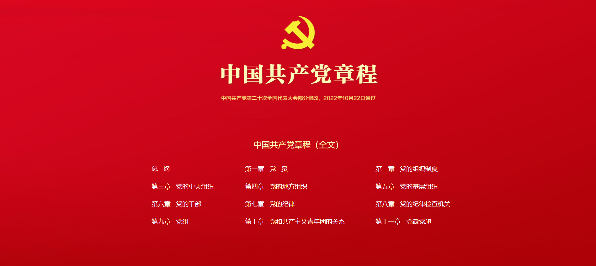 (中国共产党第二十次全国代表大会部分修改,2022年10月22日通过)