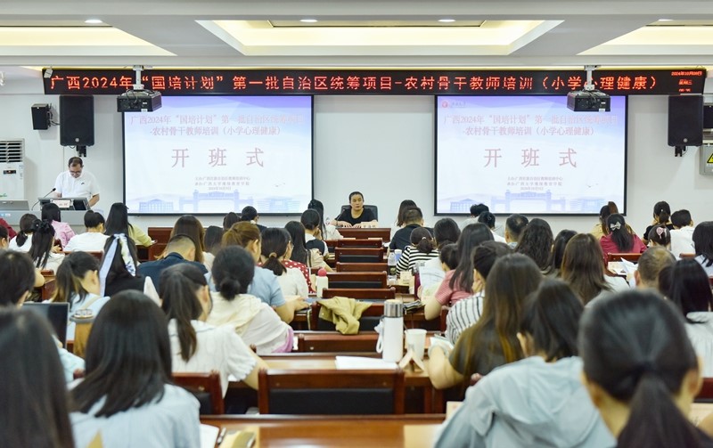 10月9日上午,广西2024年“国培计划”第一批自治区统筹项目——广西农村骨干教师培训班(小学心理健康)在我院303报告厅隆重开班。开云网页版登录入口副院长曾海艳出席开班式并发表讲话。