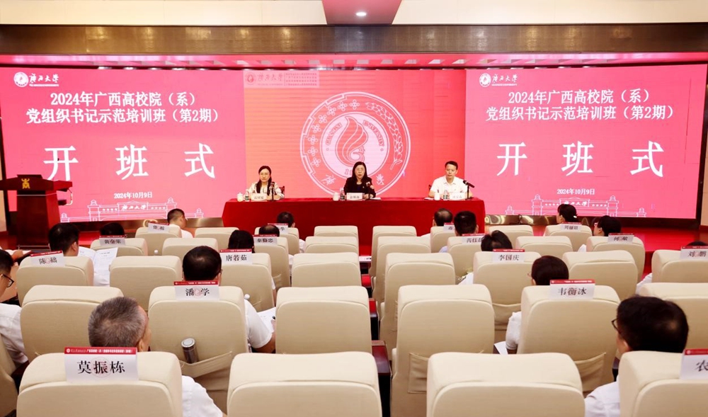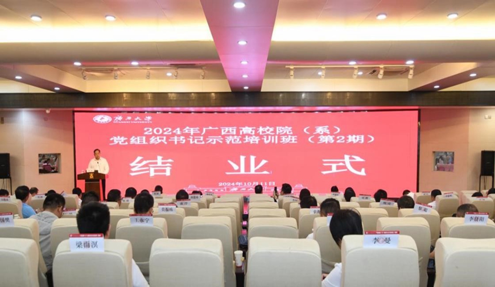 10月9日至11日,由自治区党委教育工委主办、自治区党委教育工委党校南宁分校(广西大学)承办的广西高校院(系)党组织书记示范培训班(第2期)在我校顺利举办,来自全区高校院(系)党组织书记共计63人参加本次培训班。我校党委副书记、自治区纪委监委驻校纪检监察组组长、校纪委书记金顺南出席开班式并讲话。