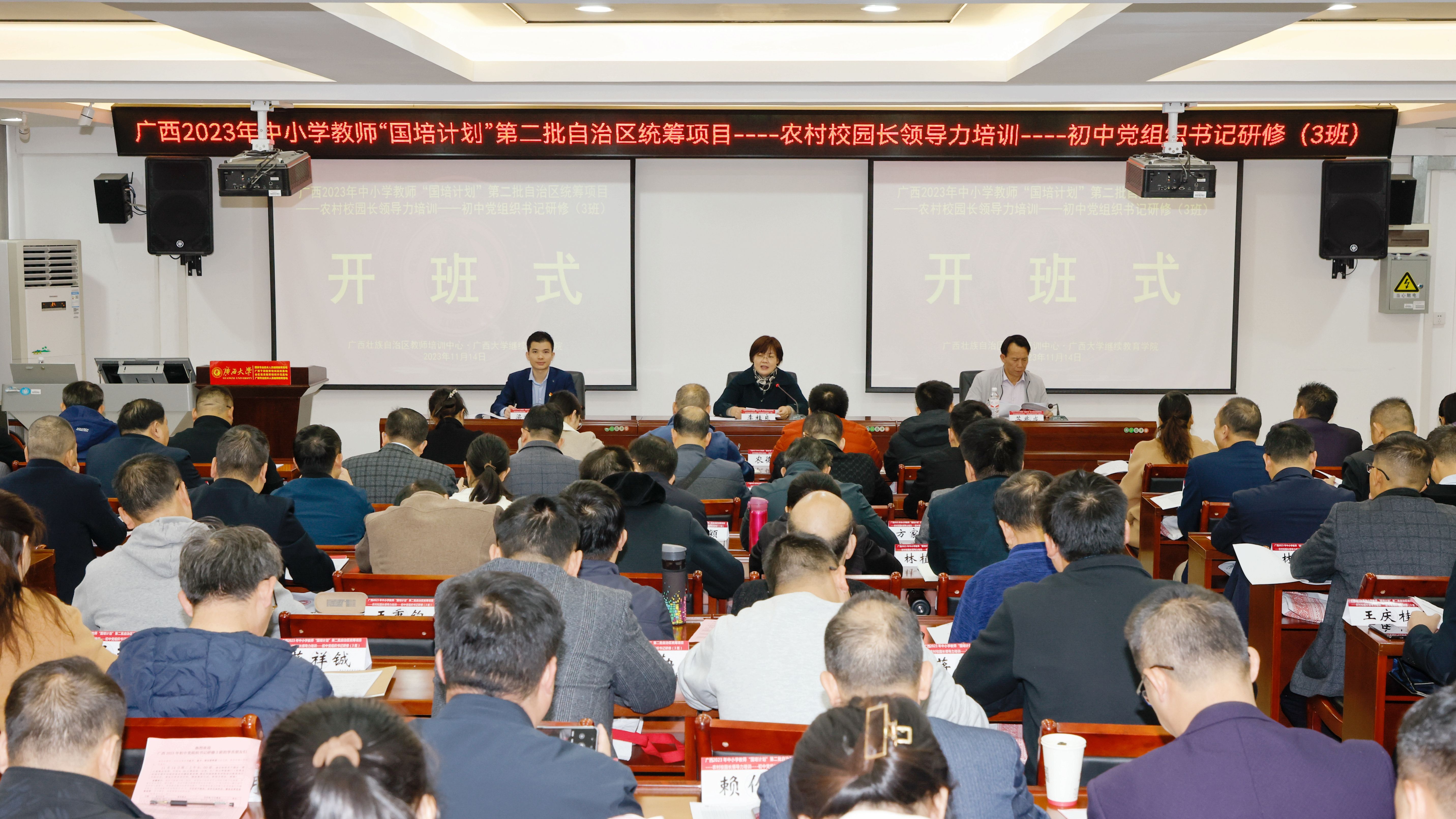 11月14日上午,由广西壮族自治区教师培训中心主办,开云网页版登录入口承办的“广西2023年农村校园长领导力培训——中小学党组织书记研修(初中党组织书记3班)”开班仪式在我校举行。广西壮族自治区教师培训中心主任李桂良、开云网页版登录入口院长苏兆成出席仪式,来自广西14个市的110名中学党组织书记、党务骨干参加仪式。