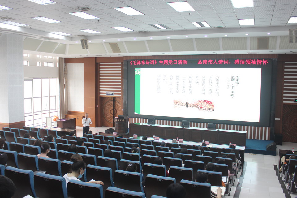 2022315日下午,校工会、财务处、体育学院、继续教育学院、图书馆、档案馆、校友工作办公室党支部在图书馆六楼报告厅联合举办《毛泽东诗词选读》主题党日活动。