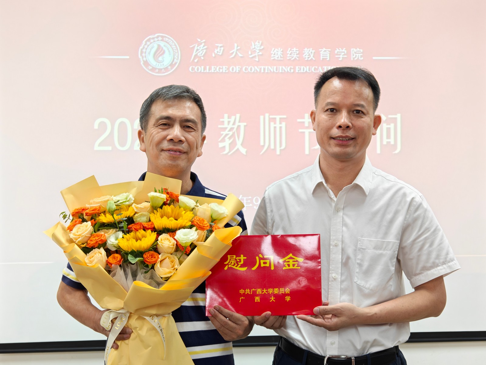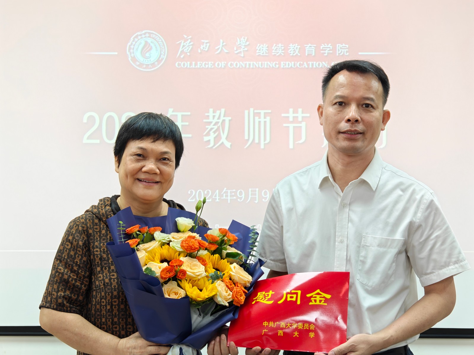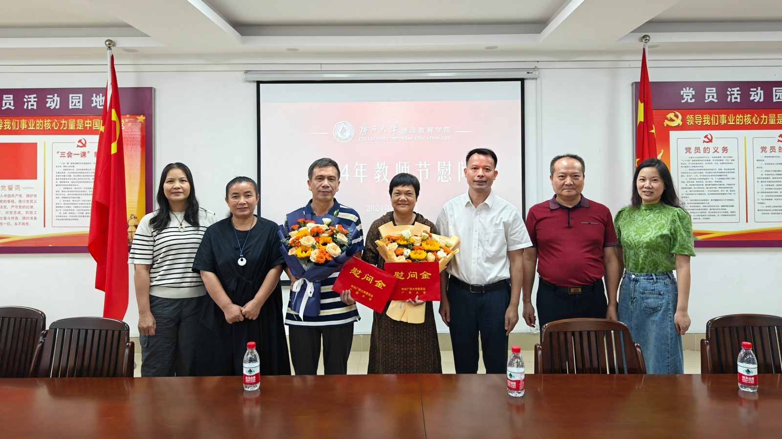 2024年9月10日是我国第40个教师节。9月9日,继续教育学院领导班子代表学校慰问学院在职教师代表,向他们送上鲜花并致以节日祝贺,代表学校倾听教师意见建议,传达学校关怀温暖。(陈昊宇/图)