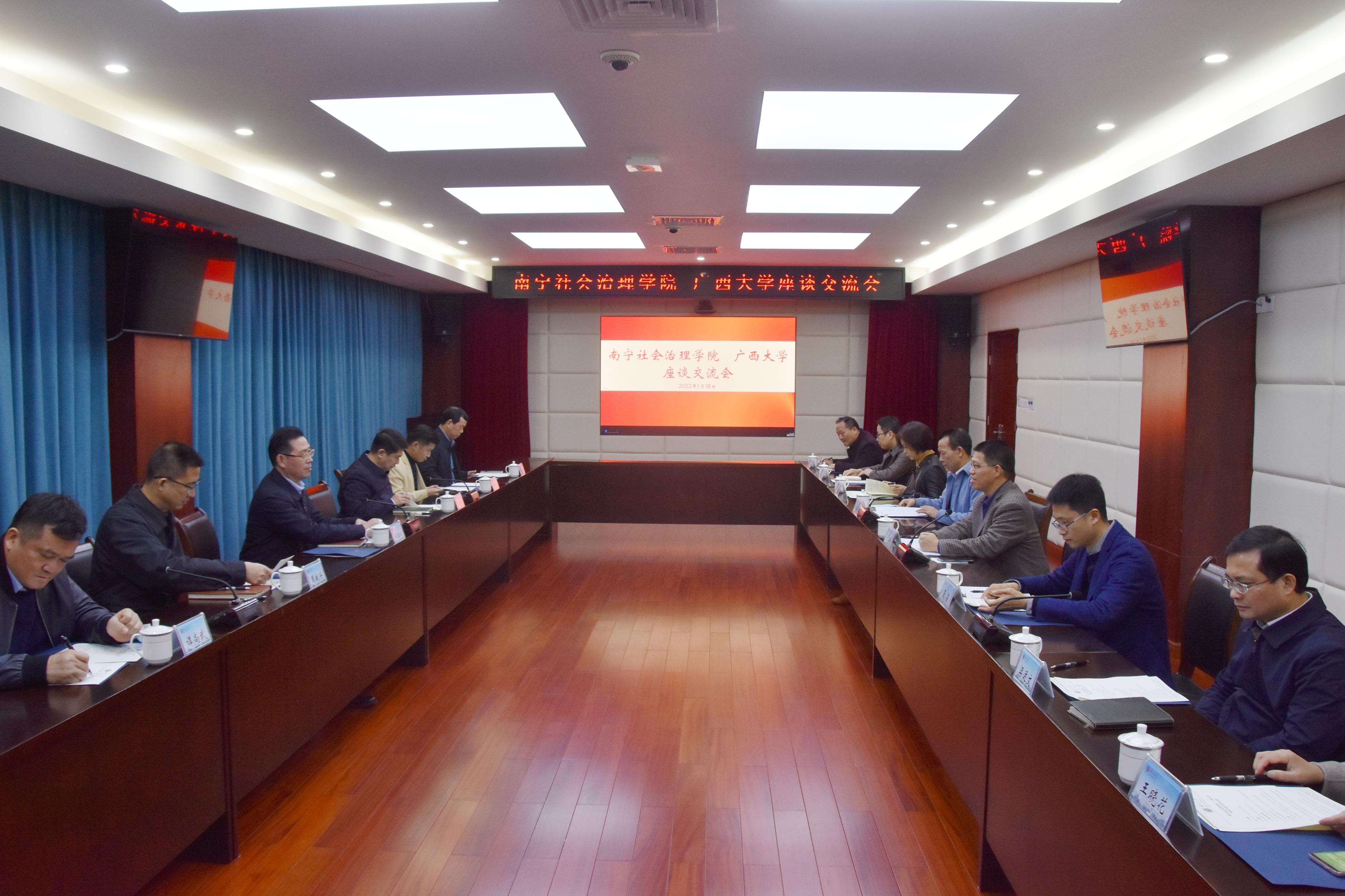 会议听取了南宁市党委政法委、开云网页版登录入口关于南宁市社会治理学院建设背景、建设历程、建设模式、工作开展情况及人才培养等相关情况介绍。与会人员就如何在南宁社会治理学院取得成就的基础上共同推动成立广西社会治理学院进行了深入交流。