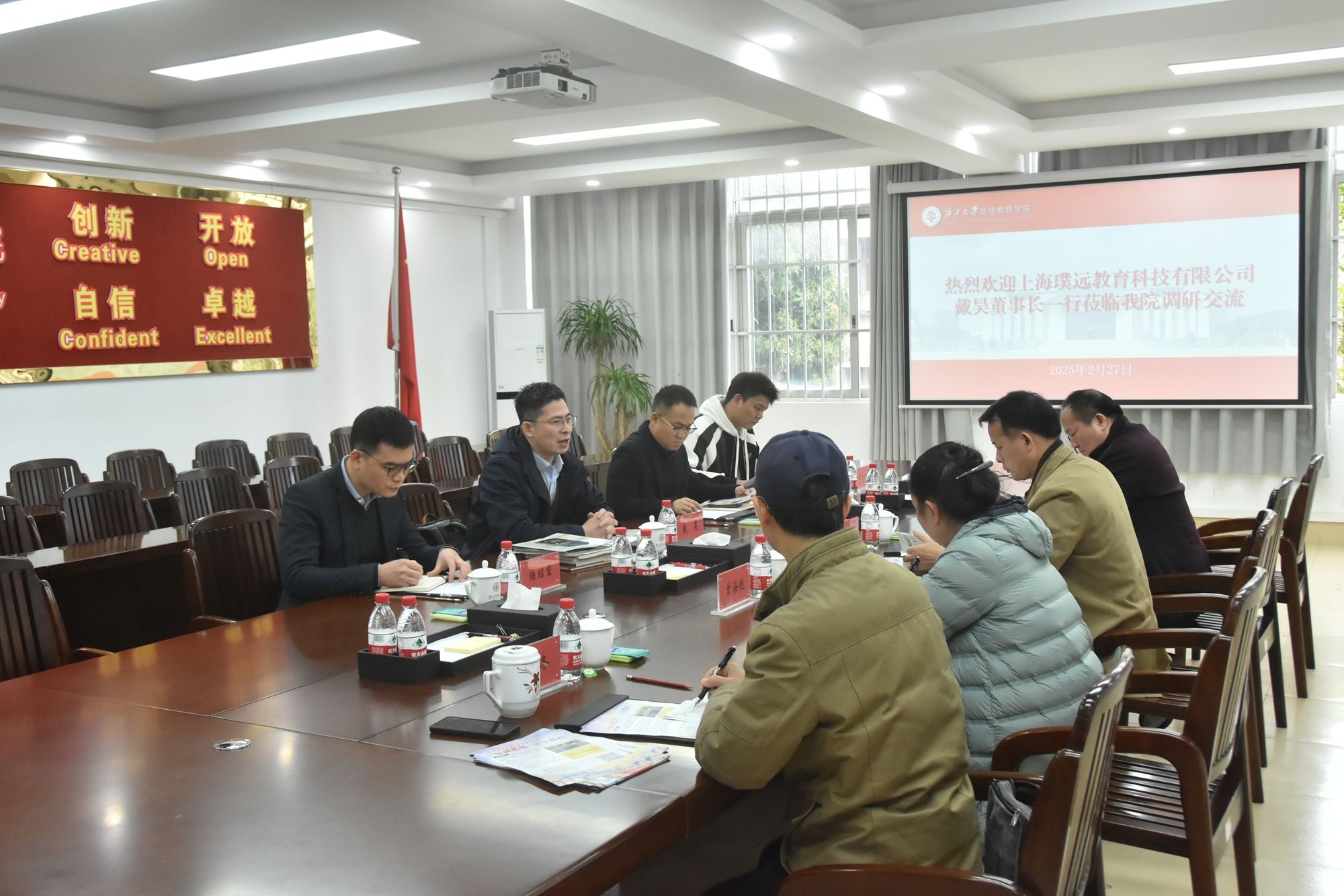 2025年2月27日下午,我院与上海璞远教育科技有限公司在学院会议室进行研学工作会谈。继续教育学院院长闭富春、副院长曾海艳、上海璞远教育科技有限公司董事长戴昊、董事莫烦等出席了会议。