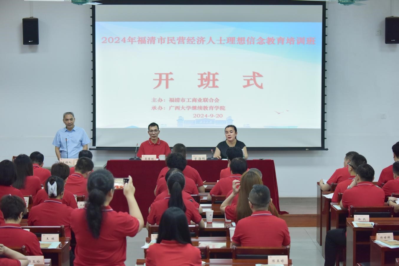 9月20日,2024年福清市民营经济人士理想信念教育培训班在我院开班。福清市人大常委会副主任、福清市工商联主席吴章明出席开班式并作动员讲话,我院副院长曾海艳出席开班式并致辞。