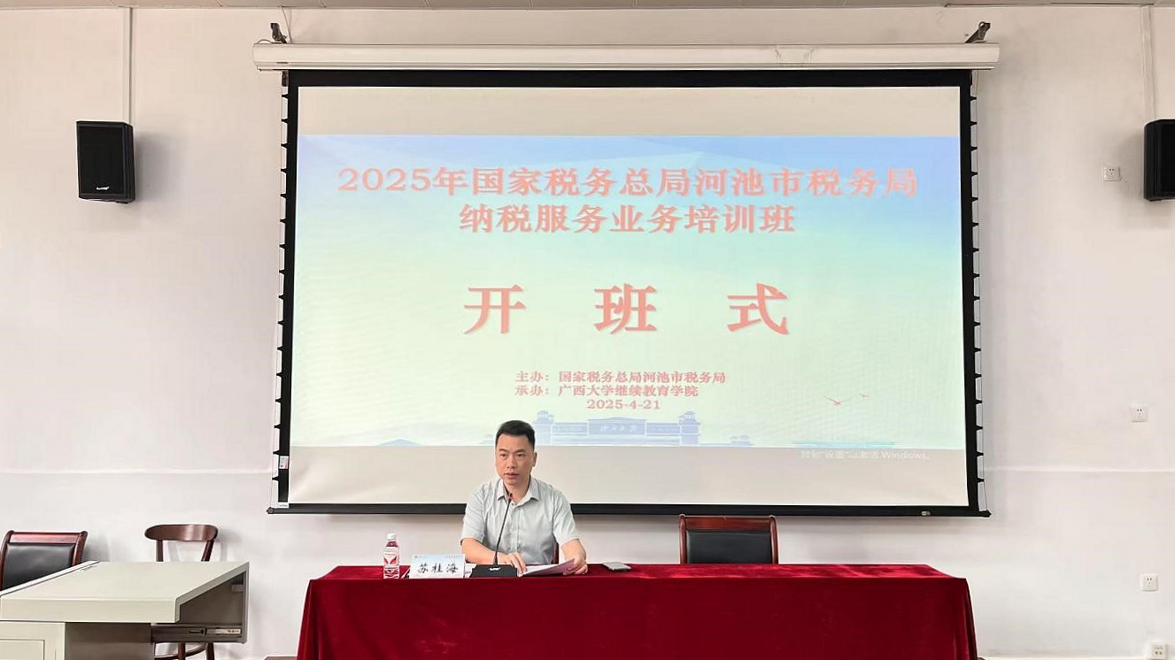 4月21日,2025年国家税务总局河池市税务局纳税服务业务培训班在我院开班,河池市税务局纳税服务科科长苏桂海出席开班式并作动员讲话。