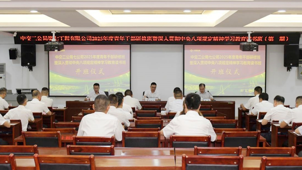 2025年7月21日,中交二公局第七工程有限公司2025年度青年干部研修班暨深入贯彻中央八项规定精神学习教育读书班(第一期)在开云网页版登录入口开班。中交二公局第七工程有限公司党委书记、执行董事张根合,开云网页版登录入口副院长徐华出席开班式并讲话,中交二公局第七工程有限公司人力资源部经理孙超主持开班式。